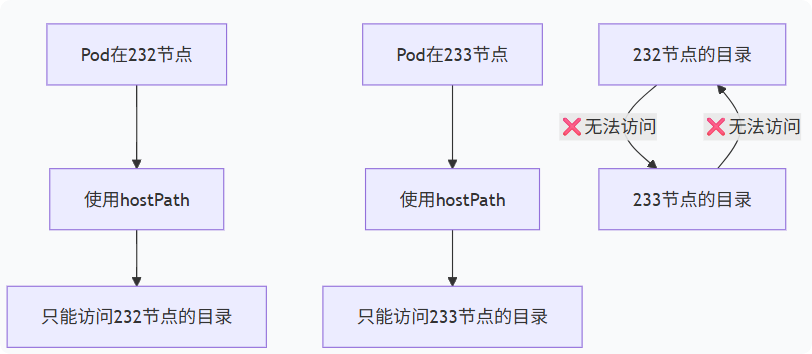 hostPath存储卷的应用场景是: 容器访问worker节点任意工作目录的情况。hostPath 将Pod与特定节点绑定,破坏了K8s的”可调度性”原则,仅在必要时使用。(意思就是232节点的pod就不能访问233节点宿主机的目录)