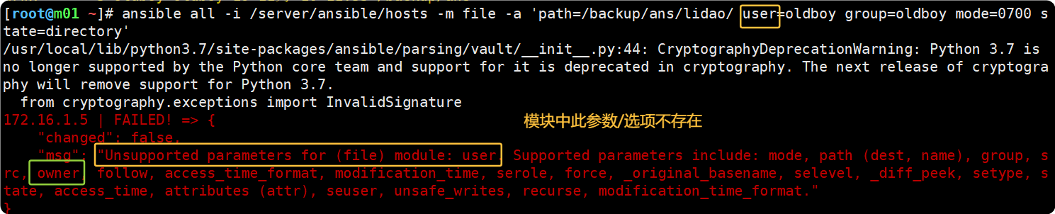 1.ansible-doc -s file #-s 搜索模块 找其选项