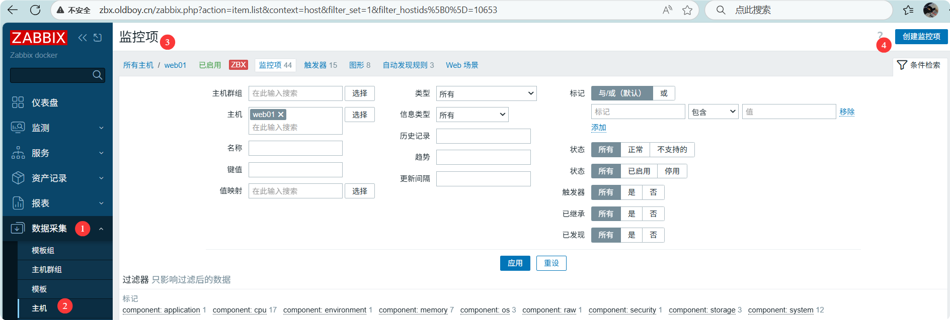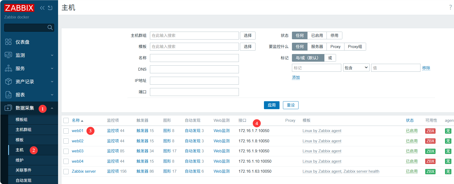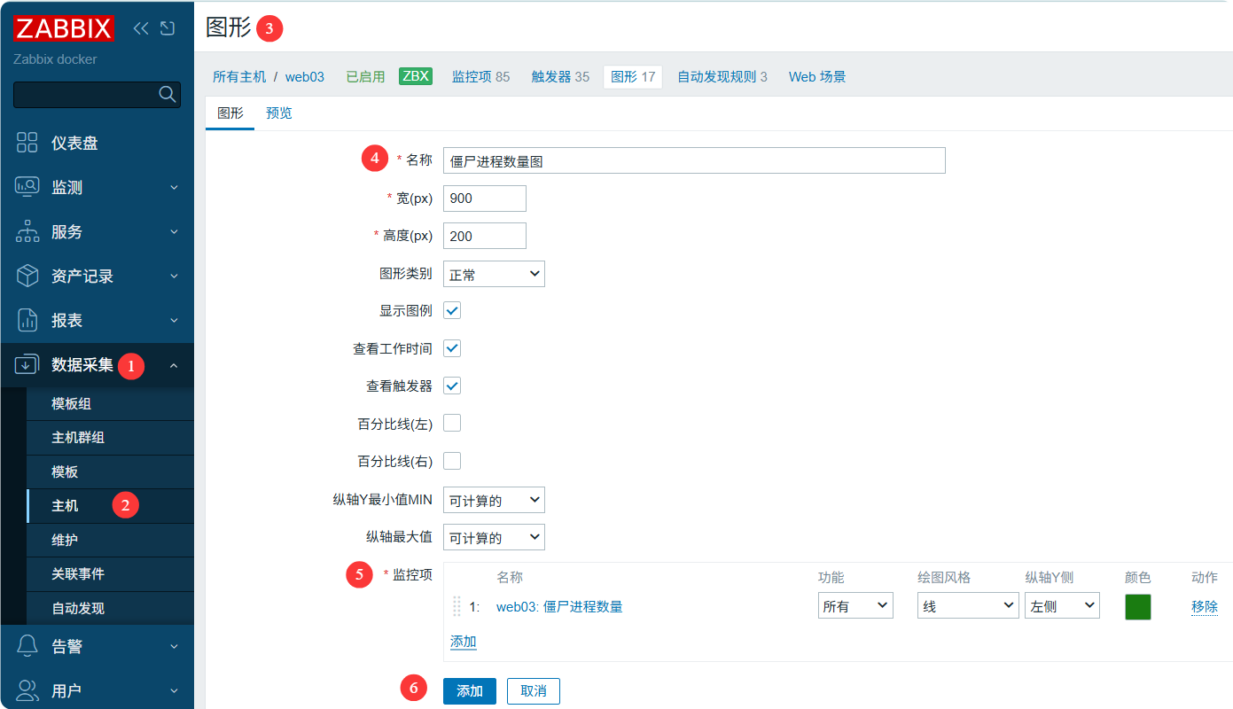 - web: 添加监控项,触发器(可选),图形(可选)