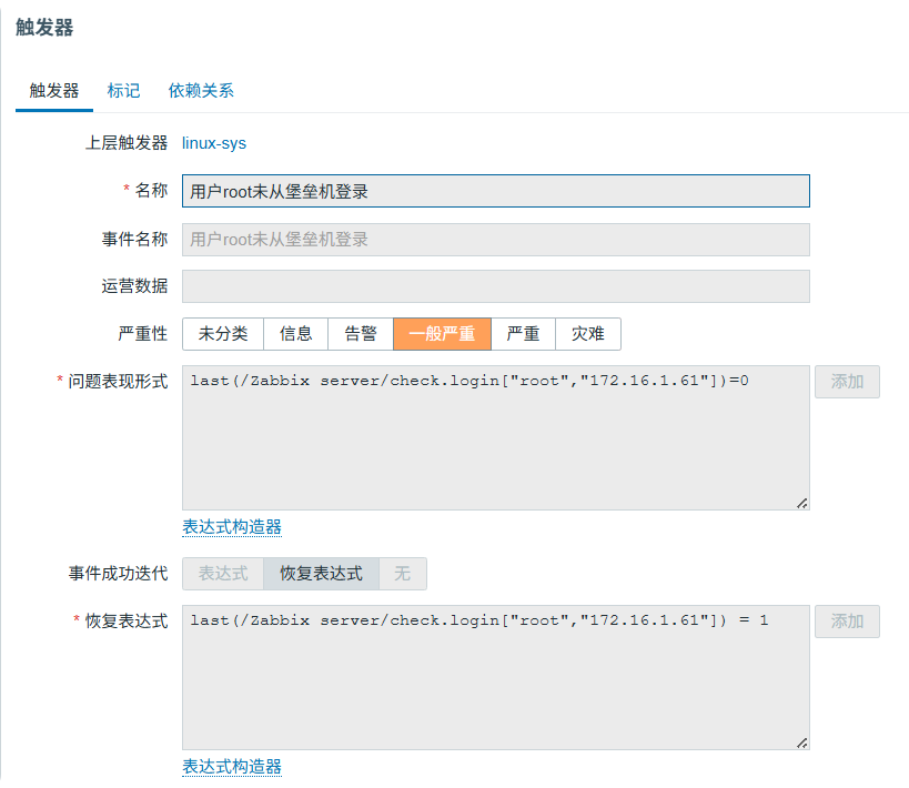 - 触发器触发后一般会进行告警操作(邮件,微信,OA软件)